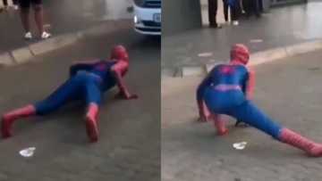 - A hilarious clip of a man who is dressed up as Spiderman has been shared online