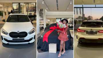 Stunner bags hot BMW hatchback and celebrates it in style, Mzansi congratulates fresh Beamer girl