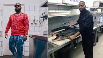 The tweep with the handle @mafelaNcube took to his timeline to share a snap of himself at work on Monday, 18 July. He was gearing up to fillet a huge tuna at his job.