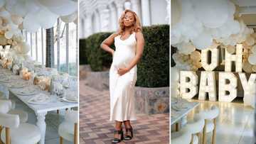 A video of Jessica Nkosi's white-themed baby shower trends, Mzansi in awe: "This is so beautiful"