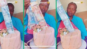 Video of mother's reaction to money cake gift melts Mzansi's hearts: "She's already counting it"