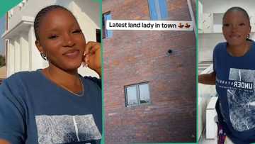 "Latest landlady": Nigerian lady celebrates after building new house, shares video of big mansion