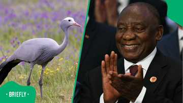 Cyril Ramaphosa gets up close with South Africa's Blue Crane at Sun City: "What a lovely bird"