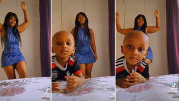 Little boy hilariously blocks curvy mom’s fire dance routine in video, leaves SA men annoyed and unimpressed