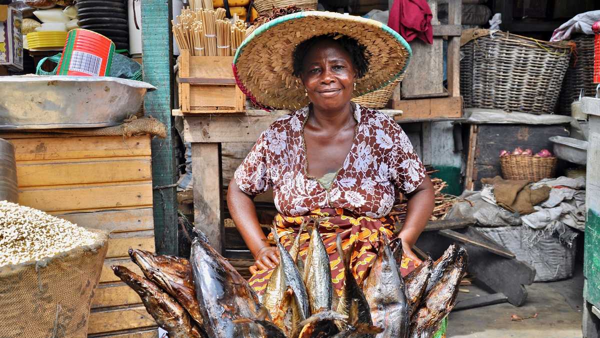 Sade sold traditional prints. Bright fabrics hung behind her like flags, drawing customers from across the road.