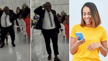 The clip shared by online user Simphiwe Khumalo (@simphiwekhumalo2) shows the gentleman dressed in his traditional attire as he dances at what looks like a tavern or a pub.