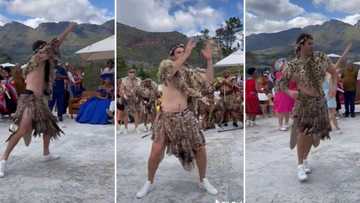 Young hunky white man dressed in traditional Zulu attire drops jaws with traditional dance, SA catches feels