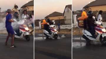 Naughty children throw buckets of water at delivery man and run away, video has elders shaking their heads