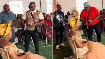 Men throw cash at African bride in traditional ceremony, TikTok video of their extravagance leaves many envious