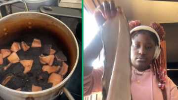 Woman burns mogodu in TikTok video and gets scolded by mom for failed cooking attempt, viewers feel her pain: "So relatable"