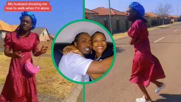Husband wears dress to show wife how to walk since she is married, video of demonstration has SA in tears