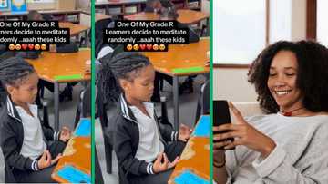 Adorable girl calmly meditates in class in TikTok video, social media admires child's inner peace