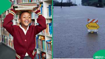 “Nothing will stop me”: Botswana child uses plastic chairs as stepping stones through flood