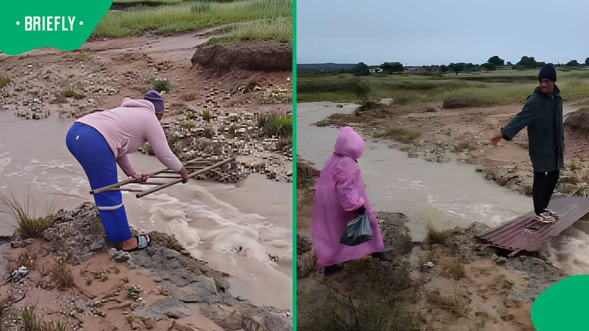 According to the post, the footage was taken in Khunwana, an area reportedly affected by ongoing water shortages. In the video, posted on 24 April 2026, a woman is seen carefully placing a ladder across a fast-running stream to create a temporary crossing. Moments later, a man steps in with a corrugated iron sheet, positioning it across the structure to help stabilise the makeshift bridge. Children then cross one by one, as they're assisted across the unsafe passage.