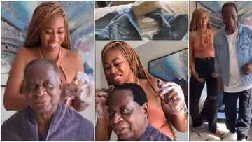 Lady transforms 85-year-old dad to young man after dyeing his hair and getting him dressed fashionably