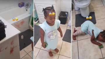Child's dramatic reaction to getting caught drawing all over the bathroom has Mzansi in stitches
