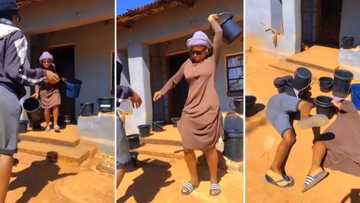 Viral video of gogo and lady do outfit change clip, Mzansi peeps laugh while hanging their heads in shame