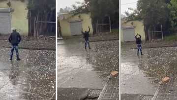 Man standing in middle of hail storm has Mzansi wondering if it's because of a woman, SA cracks jokes