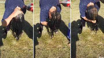 lady washes dreadlocks with Coca-Cola in viral video, leaves peeps feeling thirsty: "Pass near bees"