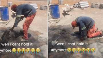 Desperate man falls to his knees while working to pray, emotional video has Mzansi peeps showing him support