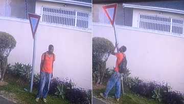 Man on SA road steals yield sign and has Mzansi up in arms over security footage, "At this rate we will have no country left"