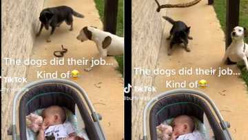 Snake near baby attacked by 3 dogs, things go wrong as serpent lands on dad filming TikTok with 14M views