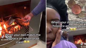 Dad turns fireplace into indoor braai in hilarious TikTok video, Mzansi can't deal: "Let that man cook"
