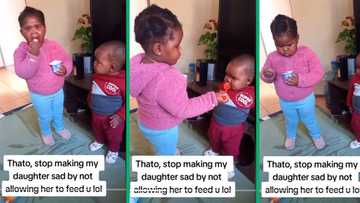 Toddler sister tries to feed brother yoghurt in adorable TikTok video, leaves Mzansi in their feels