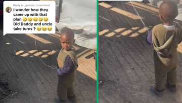 Uncle ties kid to himself while babysitting nephew in TikTok video, SA amused: "He's mad as hell"