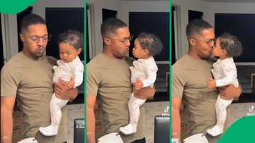 "Oh man": Baby watching father eat juicy burger and going in tongue first to lick amuses Mzansi
