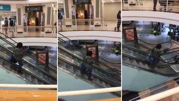 Woman walks down escalator going up in peculiar video, Peeps applaud the weird accomplishment: "She made it"