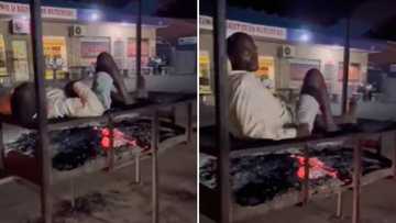 Video of man lying on braai with burning coals to keep warm in winter leaves Mzansi with mixed feels