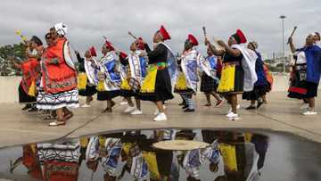 Young girls -- some bare breasted -- in equally brightly coloured pleated skirts and beads, excitedly danced and ululated in the Moses Mabhida Stadium, built for the 2010 FIFA World Cup tournament.